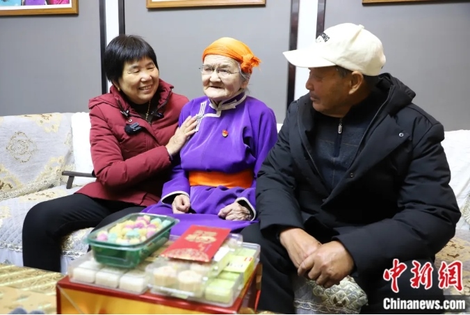 尋親之旅結束后,扎拉嘎木吉回到了四子王旗,他第一時間就去探望了都貴瑪,并帶去了南京親人準備的特產(chǎn)。