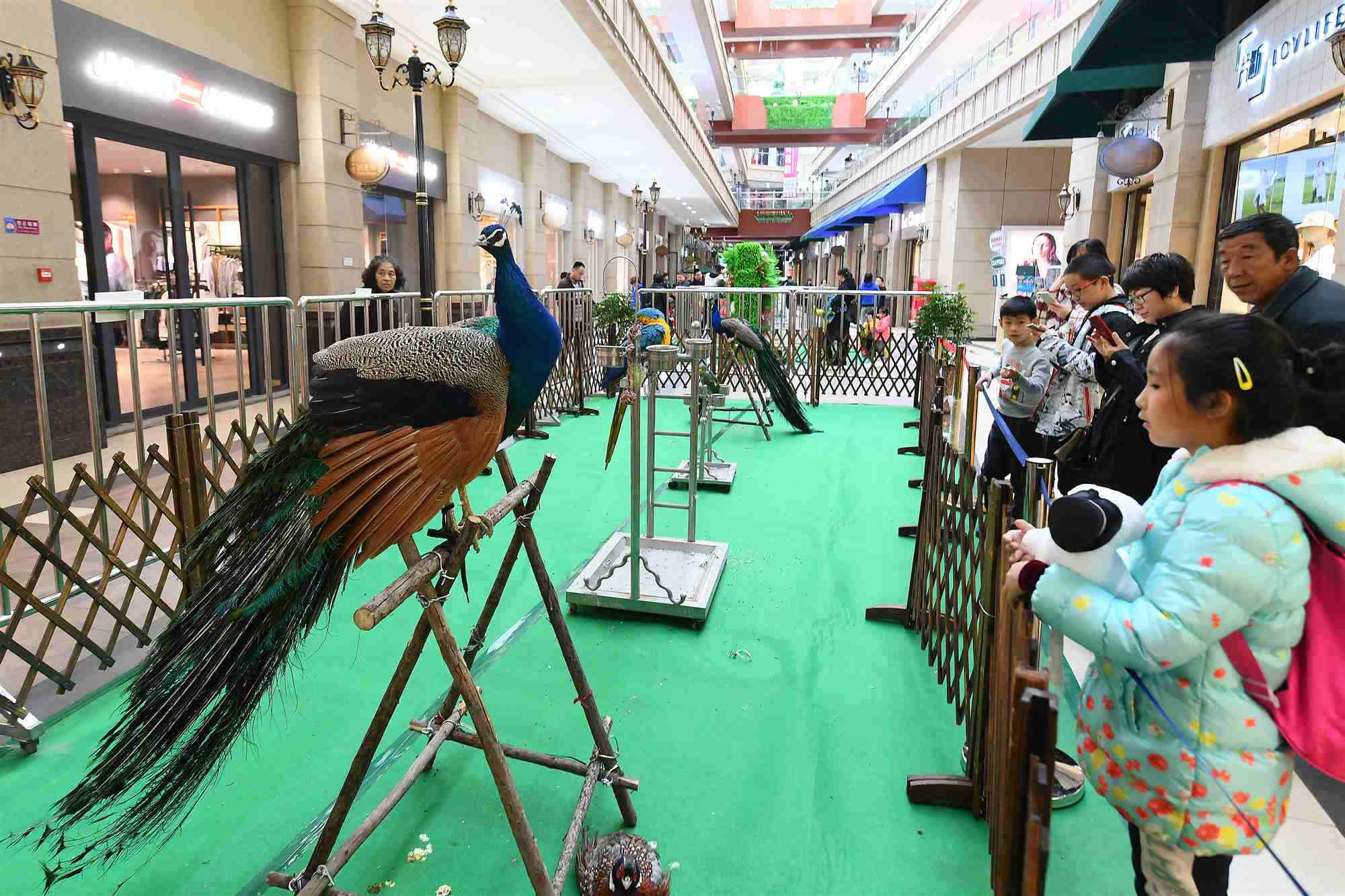 3月30日,在呼和浩特市鵬欣金游城,市民觀看百種鳥類。當日,“呼市首屆珍稀百鳥奇幻展”展出,來自全球的百種珍奇鳥類與市民近距離接觸。展期將從3月30日持續(xù)至4月7日。(內(nèi)蒙古日報社融媒體記者 金泉攝)
