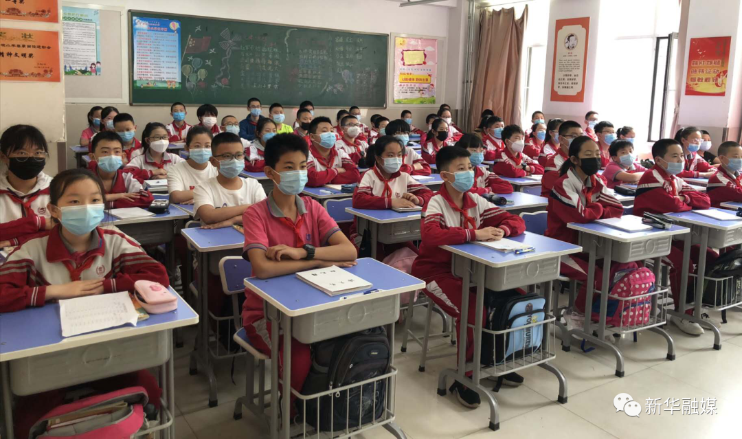 “在這朝氣蓬勃的初夏,我們迎來了新學期!我們懷著激動的心情,承載著父母的期望,背負著遠大的理想,信心滿懷地回到了學校,精神抖擻地走進了新學期?!睗M族小學校園廣播站同學們聲情并茂地誦讀著復學后的心情。