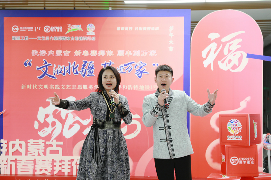 北疆新聞呼和浩特1月1日電(記者 張楊)“夢中的呼和浩特,胸懷像草原遼闊……”2025年1月1日上午,悠揚(yáng)的歌聲在呼和浩特地鐵 1 號線內(nèi)蒙古博物院站飄揚(yáng)。新年第一天,“歌游內(nèi)蒙古 新春賽拜儂 順豐到萬家”新時(shí)代文明實(shí)踐文藝志愿服務(wù)活動(dòng)在此舉行,現(xiàn)場除了青城市民耳熟能詳?shù)脑瓌?chuàng)歌曲《夢中的呼和浩特》外,根據(jù)南北朝民歌改編的《敕勒歌》、布里亞特蒙古族民歌《吆赫爾》、二人臺傳統(tǒng)唱段《拜大年》、相聲表演《說學(xué)逗唱》、手風(fēng)琴獨(dú)奏《我的少女時(shí)代》、蒙古舞《迷途的羔羊》等精彩紛呈的節(jié)目,讓往來的乘客們紛紛駐足、高聲喝彩。