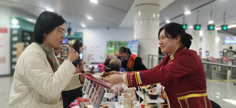 北疆新聞呼和浩特3月6日消息(記者 李艷紅)剪紙、盤扣編織、香包制作、掐絲琺瑯、面點展示……琳瑯滿目的非遺產(chǎn)品擺滿街邊地鐵口處,吸引了眾多行人來參觀。
