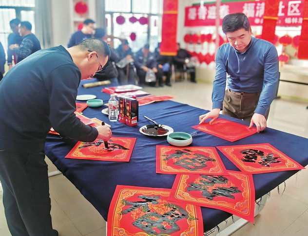 活動現(xiàn)場,書法家神情專注,手中毛筆在紅彤彤的宣紙上輕盈游走,一副副構(gòu)思巧妙、寓意美好的春聯(lián)在筆下誕生。轄區(qū)居民接過一個個寓意美好的“福”字,感受來自書法藝術(shù)的別樣魅力。(記者 孫沐野 攝)