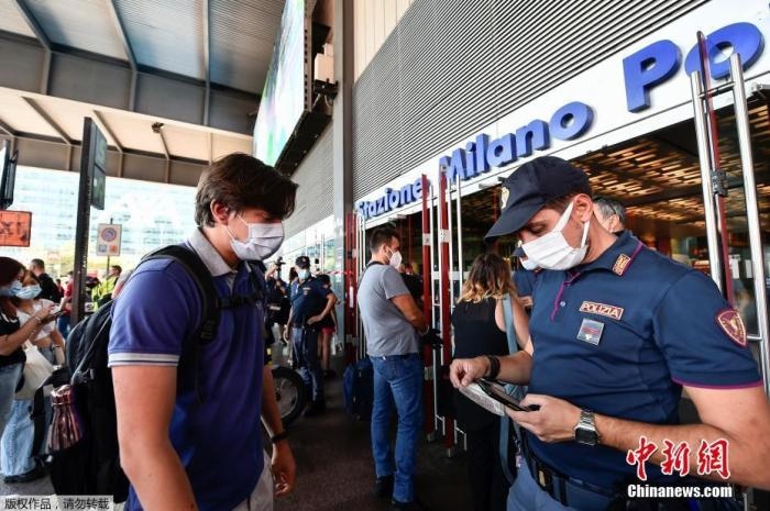 當(dāng)?shù)貢r(shí)間2021年9月1日,意大利米蘭,工作人員在火車站檢查乘客的綠色通行證。從9月1日起,意大利的綠色通行證的使用范圍將擴(kuò)大,火車、飛機(jī)和長(zhǎng)途巴士、輪船必須出示“綠色通行證”,大學(xué)生也須持“綠通證”上學(xué)。