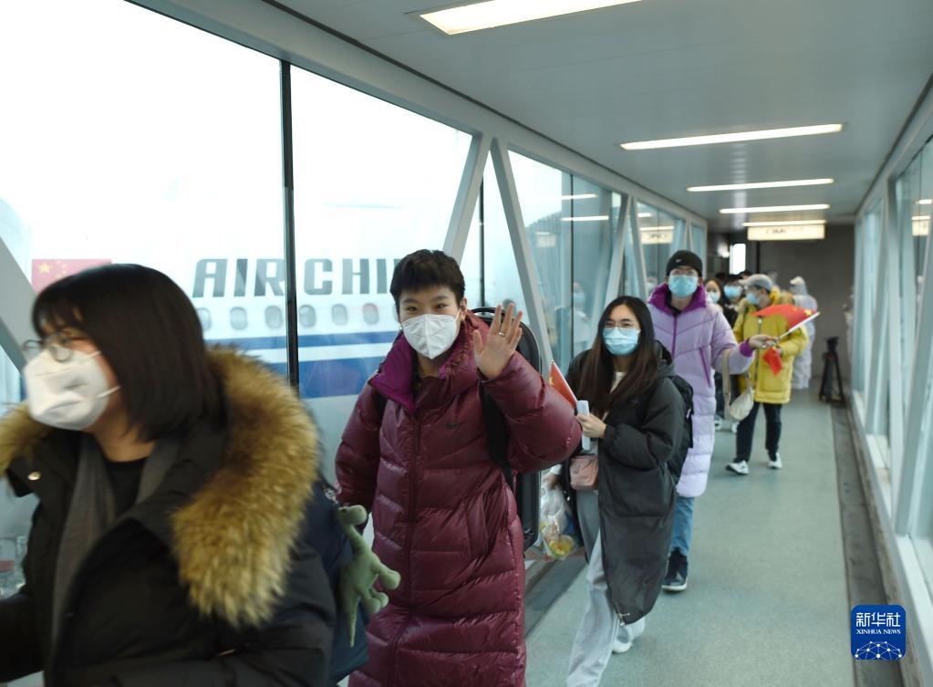 3月5日,中國公民乘坐臨時航班抵達杭州蕭山國際機場。當日早上5時41分,首架接返自烏克蘭撤離中國公民臨時航班安全抵達杭州。新華社記者 韓傳號 攝