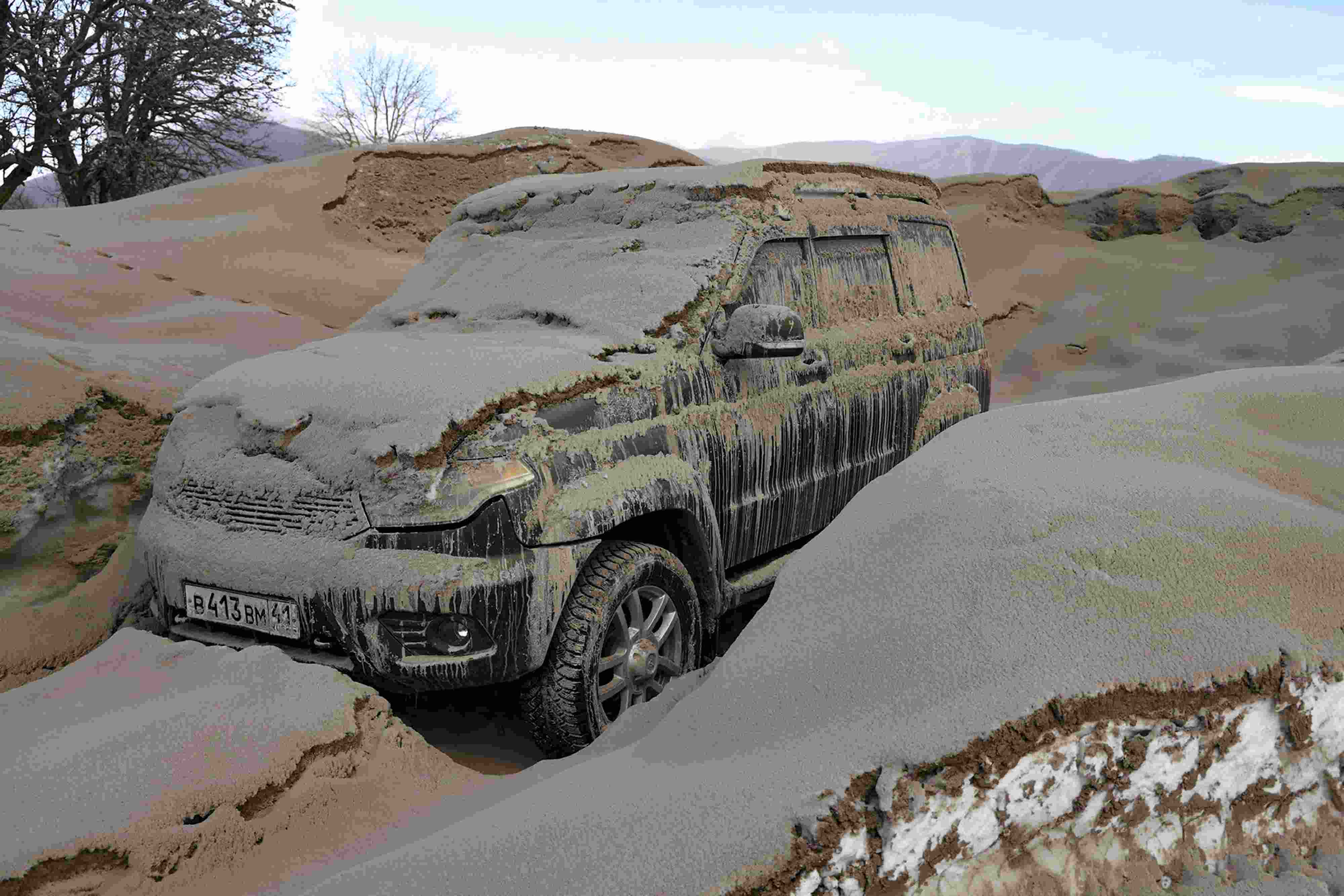 當(dāng)?shù)貢r間2023年4月12日,俄羅斯勘察加半島,希韋盧奇火山噴發(fā)后,周邊村莊被火山灰覆蓋。希韋盧奇是堪察加半島最大的火山之一,海拔3283米。 視覺中國