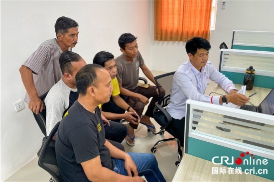穆振正在給印尼同事講述雅萬高鐵相關(guān)情況(受訪者供圖)