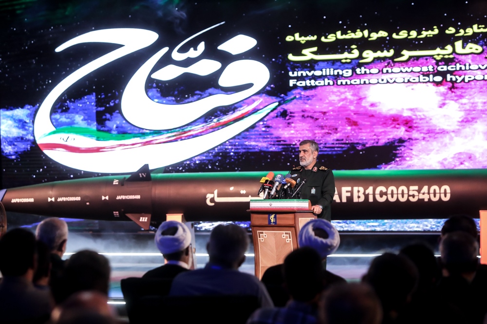 當(dāng)日,伊朗公開展示首型國產(chǎn)高超音速導(dǎo)彈“征服者”,說這種新型彈道導(dǎo)彈最大速度可以達到15馬赫、即15倍音速。伊朗總統(tǒng)易卜拉欣·萊希、伊朗伊斯蘭革命衛(wèi)隊司令侯賽因·薩拉米參加了揭幕儀式。伊朗伊斯蘭革命衛(wèi)隊航空航天部隊司令阿米爾-阿里·哈吉扎德在儀式上介紹,“征服者”導(dǎo)彈最大射程為1400公里,擊中目標前速度可達13至15馬赫。 視覺中國