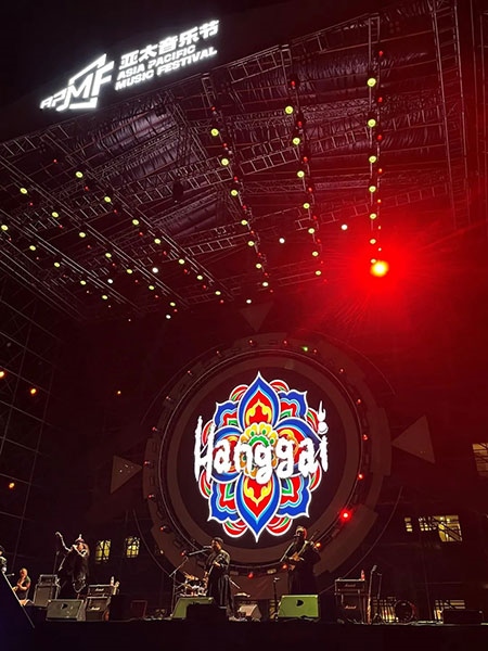 中國金屬硬搖滾樂的先驅(qū)——面孔樂隊(duì)演唱了《英雄》《幻覺》等經(jīng)典歌曲,讓人夢回青蔥歲月。當(dāng)熟悉的《愛不愛我》響起時(shí),全場觀眾都在齊聲合唱,周曉鷗也帶來了多首自己的新歌。羅琦的《我是一只小小鳥》瞬間激起了所有樂迷的熱情。王北車與觀眾開展了近距離互動(dòng),觀眾伴隨著音樂搖擺吶喊,掀起一波又一波熱潮。來自草原的杭蓋樂隊(duì)一上臺就引起了觀眾的熱烈反響,蒙古民間音樂與搖滾樂在草原激情碰撞。舞臺上,音符律動(dòng)、唱跳狂嗨;舞臺下,尖叫不斷,釋放激情。