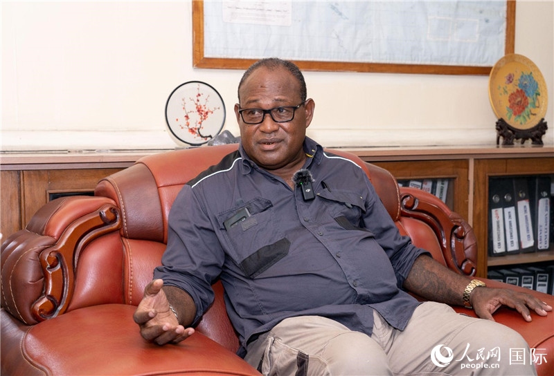 2023年9月13日,所羅門群島副總理兼基礎(chǔ)設(shè)施和發(fā)展部長梅納西·梅蘭加在首都霍尼亞拉接受人民網(wǎng)記者專訪。人民網(wǎng) 賀吉攝