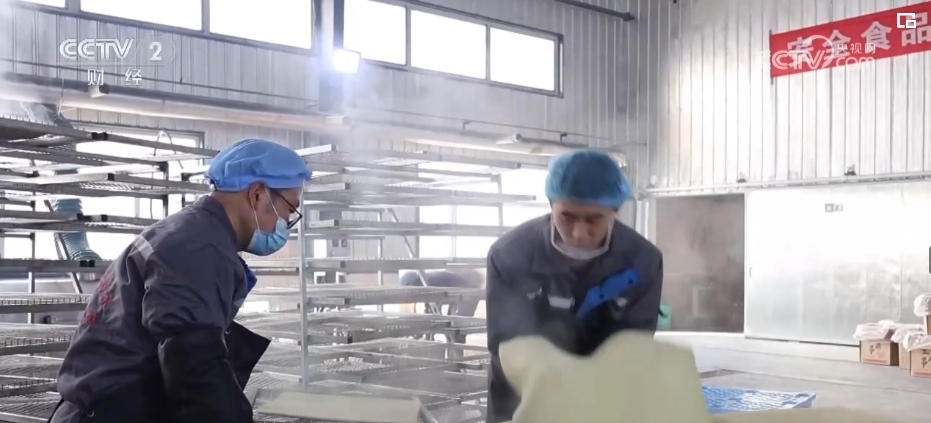 這兩天,在山西黎城縣的豆腐制作工坊里,工作人員忙碌地制作手工豆腐,豆香四溢,充滿了濃濃的年味兒。