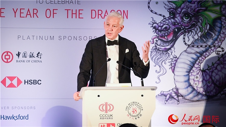 英中貿(mào)易協(xié)會(huì)主席古沛勤爵士致辭。人民網(wǎng) 郭錦標(biāo)攝