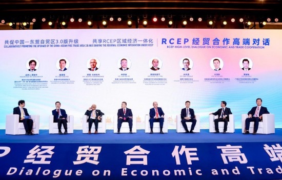 當(dāng)日,以“共促中國—東盟自貿(mào)區(qū)3.0版升級(jí) 共享RCEP區(qū)域經(jīng)濟(jì)一體化”為主題的RCEP經(jīng)貿(mào)合作高端對(duì)話在廣西南寧舉行。與會(huì)人員圍繞進(jìn)一步升級(jí)RCEP規(guī)則標(biāo)準(zhǔn)、拓展合作領(lǐng)域、擴(kuò)大成員范圍、RCEP實(shí)施與中國—東盟自貿(mào)區(qū)3.0版相得益彰相互促進(jìn)等進(jìn)行交流對(duì)話。