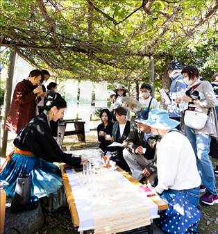 為了讓更多日本民眾沉浸式體驗(yàn)中國(guó)茶文化,活動(dòng)還以萬(wàn)福寺的國(guó)寶及重要文化遺產(chǎn)建筑群為舞臺(tái),現(xiàn)場(chǎng)設(shè)置了浙江、武夷山、茶馬古道等多個(gè)富有特色的茶文化體驗(yàn)區(qū),近千名游客開(kāi)啟了一場(chǎng)“茶和天下”的尋茶之旅。游客們進(jìn)入萬(wàn)福寺時(shí)會(huì)得到一張尋茶地圖,伴隨著輕柔的古琴聲,他們可以在古建筑之間尋找茶香的來(lái)源。通過(guò)親身品茶,游客們不僅體驗(yàn)了不同茶葉的風(fēng)味,還深入了解了中國(guó)各大茶產(chǎn)地的獨(dú)特魅力?;?dòng)體驗(yàn)激發(fā)了讓日本民眾對(duì)中國(guó)茶文化的濃厚興趣,許多客人表示希望能實(shí)地探訪中國(guó)的茶產(chǎn)地,以進(jìn)一步感受和探索當(dāng)?shù)氐牟栉幕?/p>