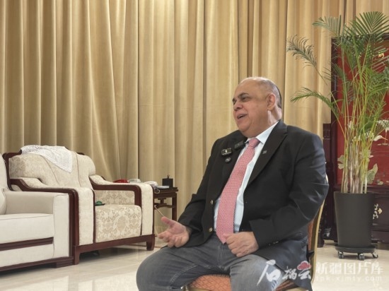 上合組織副秘書長索海爾·汗在專訪中。石榴云/新疆日報記者 劉翔攝