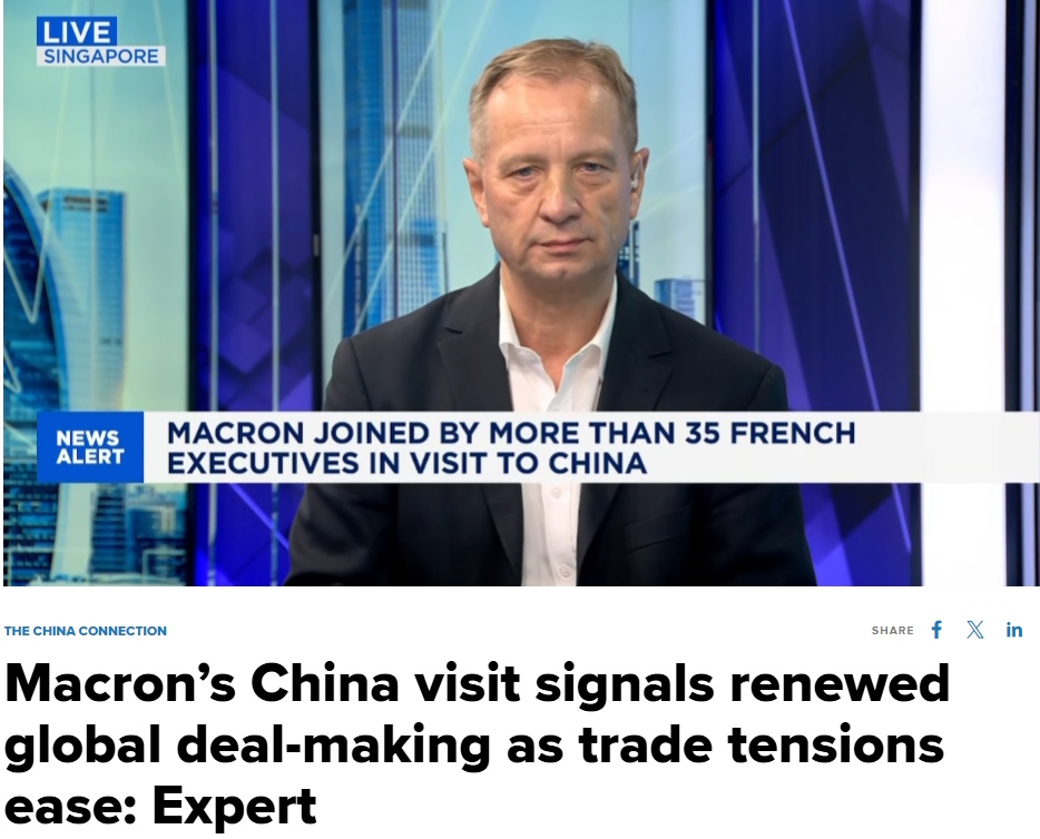 席睿德舉例說,法國方面此次隨行的龐大 CEO 代表團(tuán),彰顯了法國企業(yè)對中國市場的高度重視。代表團(tuán)成員覆蓋航空航天、能源、食品等多個關(guān)鍵領(lǐng)域,其核心目標(biāo)便是尋求新的商業(yè)合作與交易機(jī)會。他認(rèn)為馬克龍訪華將取得實質(zhì)性成果。