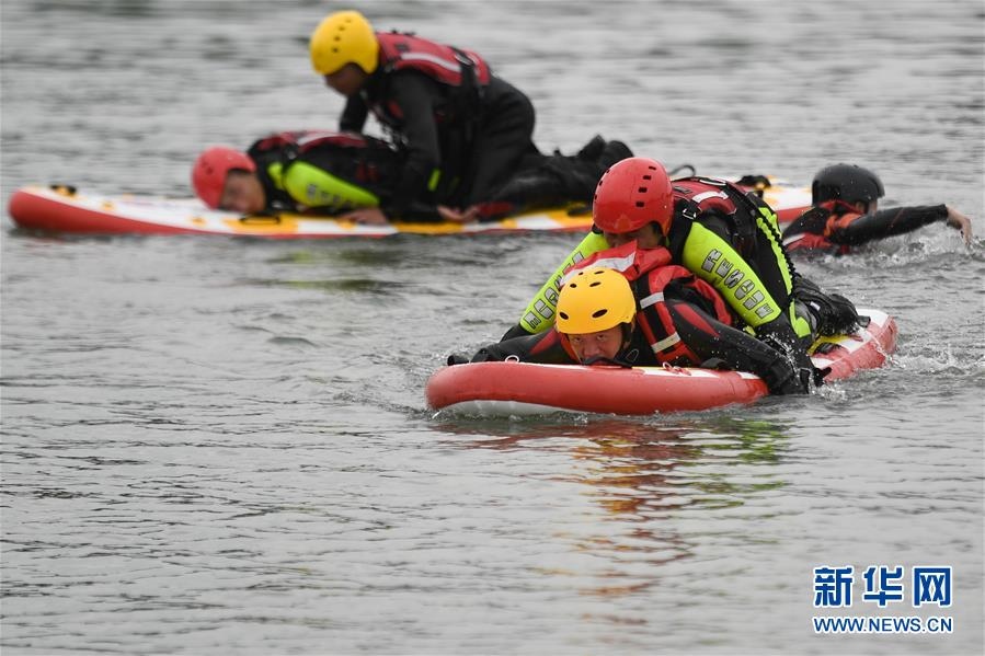 7月7日,吳興區(qū)消防救援大隊(duì)隊(duì)員在演練水上救援,以備搶險(xiǎn)。 近日,位于浙江北部的湖州市遭遇多輪降雨,東部平原河網(wǎng)普遍超警戒水位,水庫(kù)山塘高位運(yùn)行。7月5日12時(shí)30分,湖州市人民政府防汛防旱指揮部將防汛應(yīng)急響應(yīng)提升至Ⅲ級(jí),要求各地密切監(jiān)測(cè)汛情,切實(shí)做好各項(xiàng)防范工作,確保安全度汛。 新華社記者 黃宗治 攝