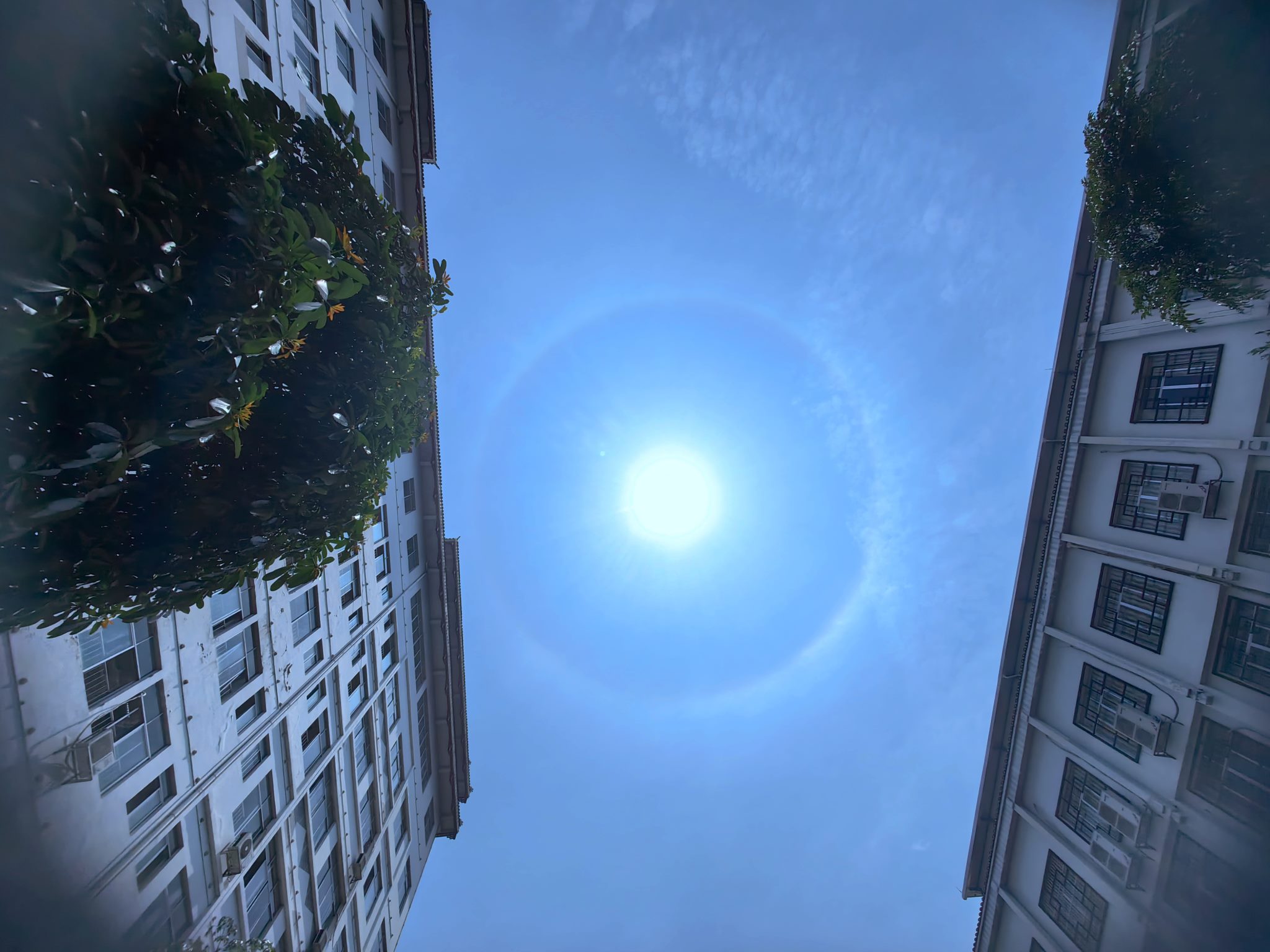 2023年4月30日,廣西來賓,忻城縣上空出現(xiàn)日暈景觀。視覺中國