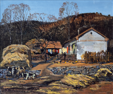 《激戰(zhàn)松骨峰》描繪的是抗美援朝戰(zhàn)爭(zhēng)中,中國(guó)人民志愿軍與美軍激烈廝殺的悲壯場(chǎng)面。作者從動(dòng)態(tài)型的構(gòu)圖與形象表層,把戰(zhàn)爭(zhēng)集團(tuán)之間的搏殺以濃重的筆調(diào)展現(xiàn)開(kāi)來(lái),表現(xiàn)了中國(guó)人民志愿軍英勇頑強(qiáng)、熱愛(ài)自由和勇于犧牲的精神,展示了歷史的悲劇性沖突。作者從沉甸甸的歷史中找到戰(zhàn)爭(zhēng)中最慘烈、最殘酷、最能表現(xiàn)人物悲劇性命運(yùn)的瞬間,用現(xiàn)實(shí)主義的創(chuàng)作手法,扎實(shí)、生動(dòng)地塑造了一個(gè)又一個(gè)志愿軍勇士的形象。硝煙籠罩著戰(zhàn)場(chǎng),鮮血與白雪融合成冰,敵我雙方,犬牙交錯(cuò),生死搏殺。同時(shí),也使我們感受到戰(zhàn)爭(zhēng)的殘酷與生命的脆弱。作者處理宏大的戰(zhàn)爭(zhēng)場(chǎng)面獨(dú)具匠心:陽(yáng)光透過(guò)硝煙,有節(jié)奏地營(yíng)造出戰(zhàn)場(chǎng)的空間;雪地上被間隔的藍(lán)色陰影,反襯出黃褐色的主調(diào)。作品對(duì)細(xì)部進(jìn)行了恰如其分的刻畫,但又不失對(duì)整體宏觀的把握,厚重的色彩中透出熱情,樸拙的筆觸映著畫家的激動(dòng)。