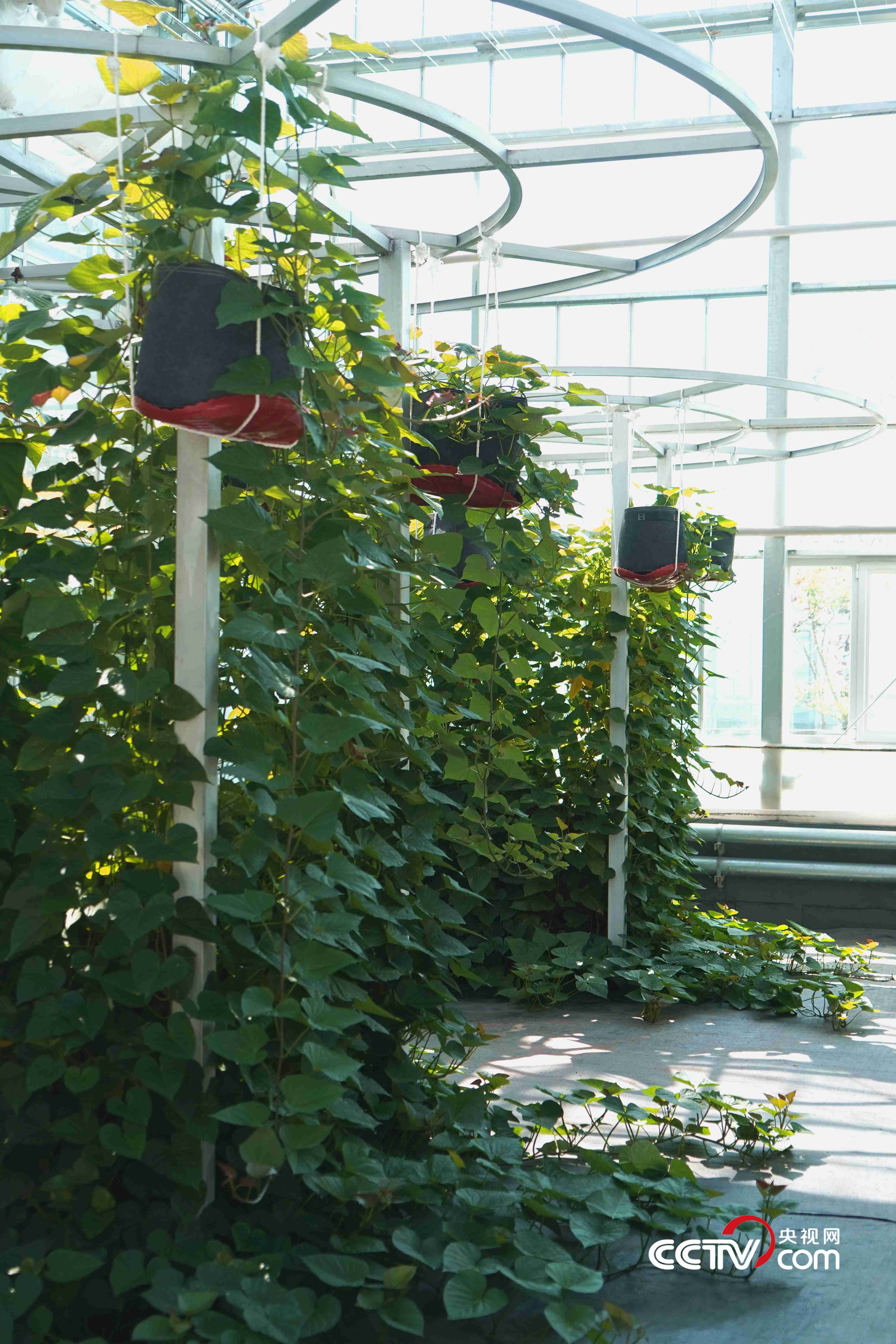 空中紅薯則利用深液流栽培模式,將紅薯由傳統(tǒng)的土壤栽培轉(zhuǎn)變?yōu)樗耘嗟哪J健j戣幢硎?,其特點(diǎn)體現(xiàn)在水生根系能為植株提供充足的水肥,壓蔓產(chǎn)生的不定根成為儲(chǔ)藏根,實(shí)現(xiàn)了根系的分工合作,能夠達(dá)到一年種植多年采收的效果?!皳?jù)測(cè)算,單株冠幅在60平方米的‘紅薯樹’一年可產(chǎn)1200多斤的紅薯。”這種栽培模式不僅能帶來(lái)經(jīng)濟(jì)效益,在農(nóng)業(yè)觀光、科普教育方面也有獨(dú)特價(jià)值。