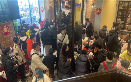 其中,《繁花》至真園餐廳的取景地——黃河路上的苔圣園餐廳如今每天訂滿。苔圣園店長陳宗余表示,過年的話,年夜飯晚上的位置已經(jīng)都沒有了。工作人員也表示,這般火爆的情況,至少要比電視劇播出前翻了2-3倍。