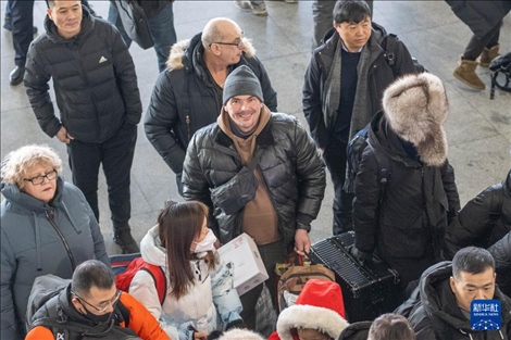 1月30日,中外游客在黑河水運(yùn)口岸出境大廳等候進(jìn)入出境通道。新華社記者 謝劍飛 攝