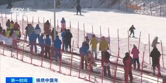 在沈陽體育學(xué)院白清寨滑雪場,各條雪道上人頭攢動,很多南方游客專程來這里體驗冰雪運動。
