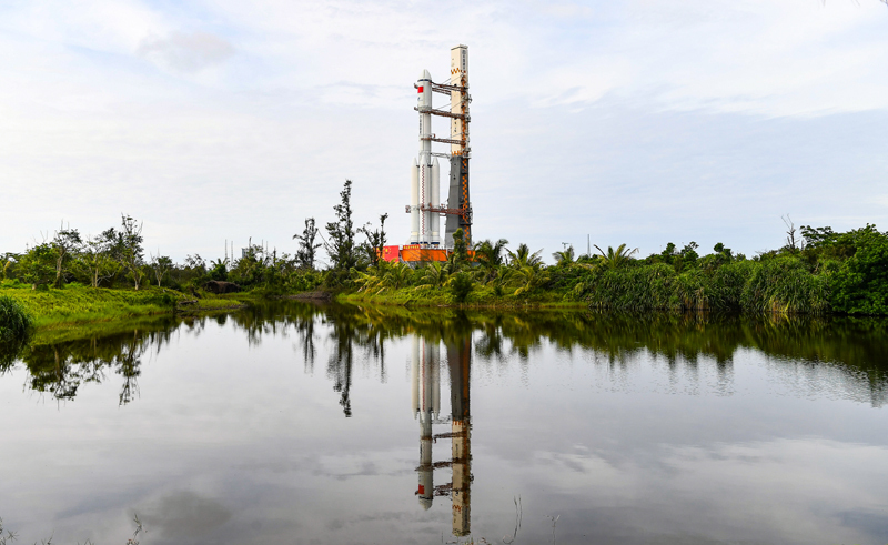 7月12日,天舟九號(hào)貨運(yùn)飛船與長(zhǎng)征七號(hào)遙十運(yùn)載火箭組合體垂直轉(zhuǎn)運(yùn)中。