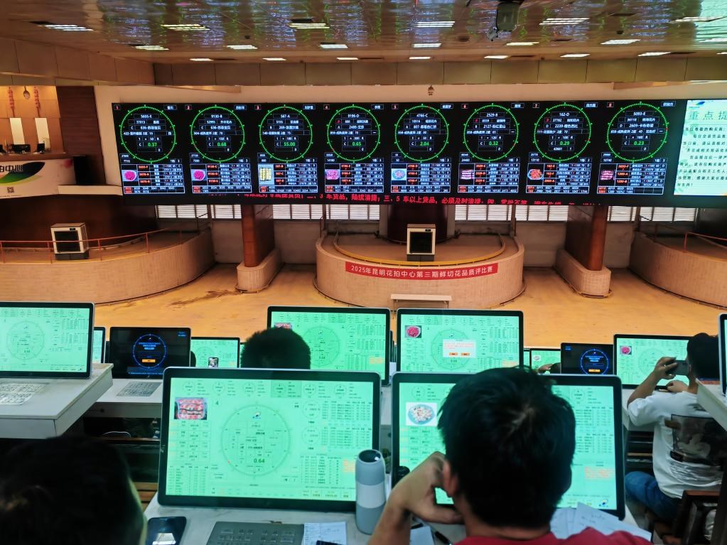 記者在昆明國際花卉拍賣交易中心看到,拍賣大鐘界面顯示著各種花卉的信息,數(shù)百名購買商操作著競價器選購鮮花。昆明國際花卉拍賣交易中心副總經(jīng)理汪洋介紹,這里每天的鮮花交易量都超700萬枝,單日最高交易量超1100萬枝,30%以上的鮮花被各大電商和直播團(tuán)隊(duì)拍下,他們再拿到電商平臺或直播間銷售。