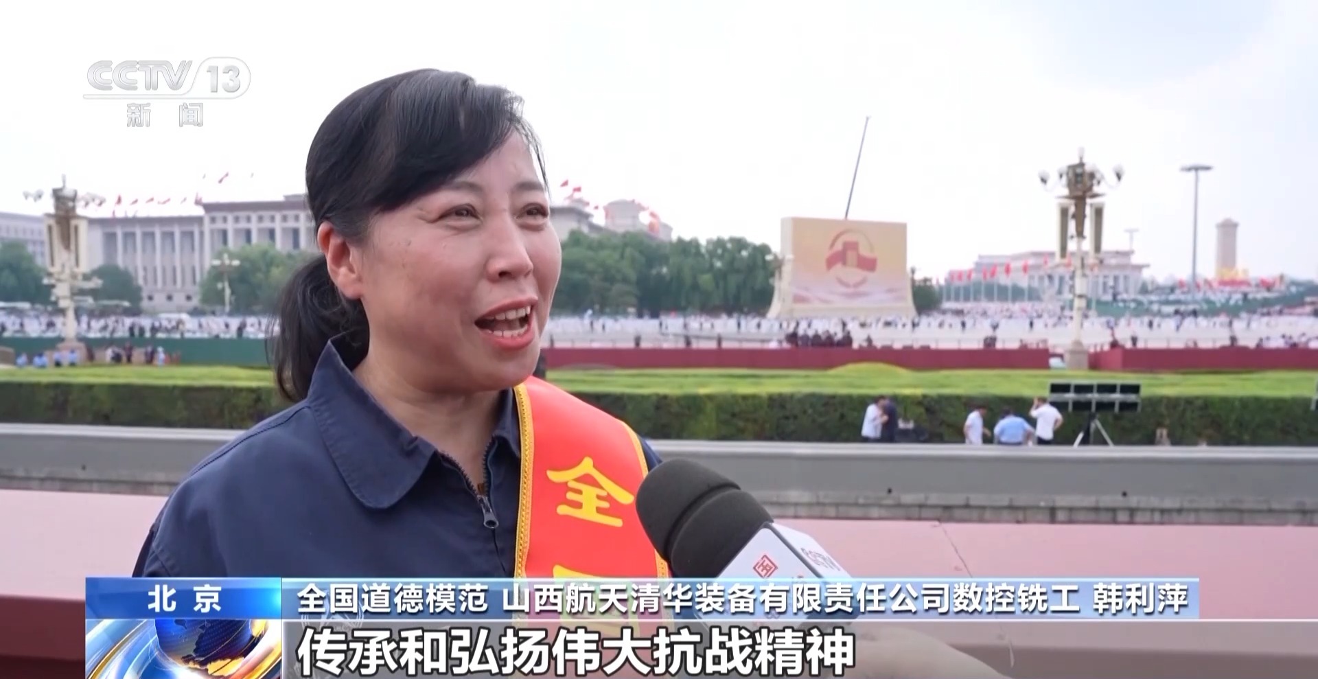 全國道德模范、山西航天清華裝備有限責(zé)任公司數(shù)控銑工 韓利萍:傳承和弘揚(yáng)偉大抗戰(zhàn)精神,這句話對(duì)我的觸動(dòng)非常深。我要把忠誠愛國、精益求精、堅(jiān)韌不拔的精神融入日常工作中,把每一個(gè)產(chǎn)品都加工成精品,為航天強(qiáng)國貢獻(xiàn)力量