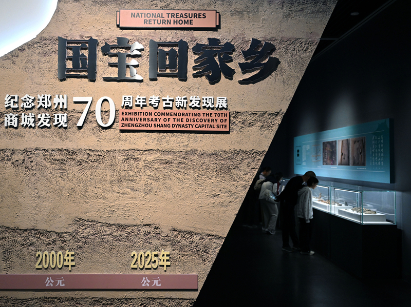 10月3日,觀眾在鄭州商代都城遺址博物院參觀“國寶回家鄉(xiāng)——紀念鄭州商城發(fā)現(xiàn)70周年考古新發(fā)現(xiàn)展”。