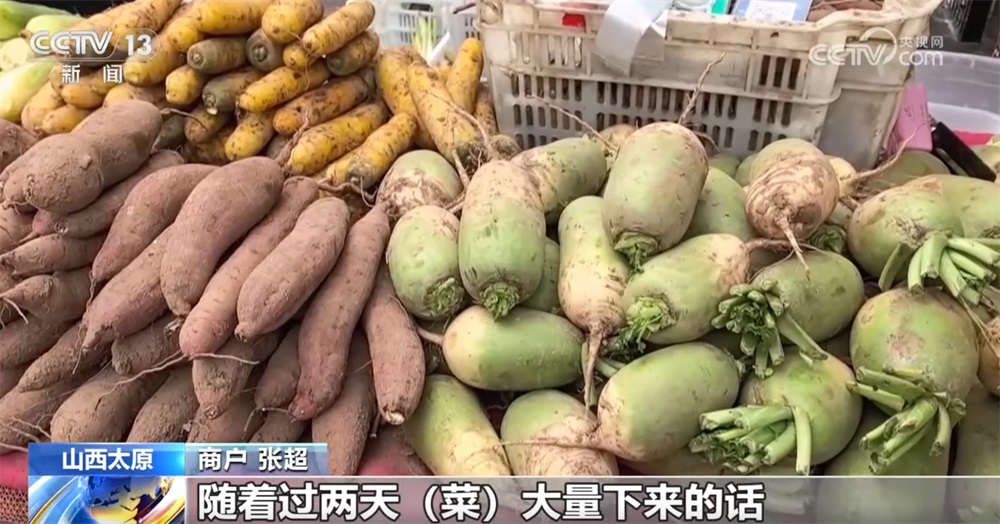商戶張超稱:“芥菜今年一塊錢(qián)一斤,白蘿卜也是一塊錢(qián)一斤,隨著過(guò)兩天菜大量下來(lái)的話,價(jià)格還會(huì)便宜點(diǎn)?!?/p>