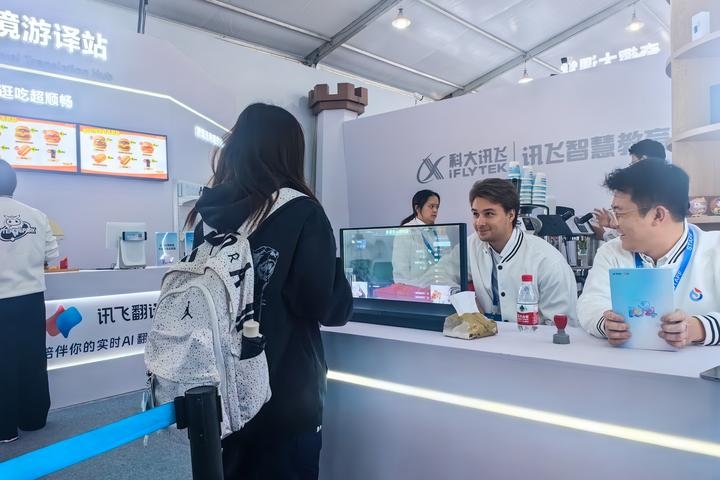 觀眾在第八屆世界聲博會上體驗(yàn)一款多語種AI透明屏(11月3日攝)。新華社記者 汪海月 攝