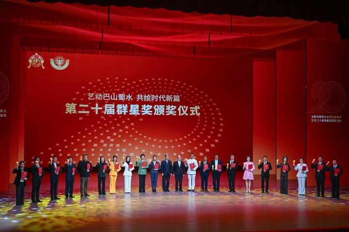 這是2025年11月4日在重慶拍攝的第二十屆群星獎(jiǎng)?lì)C獎(jiǎng)儀式現(xiàn)場(chǎng)。新華社記者 陳誠(chéng) 攝