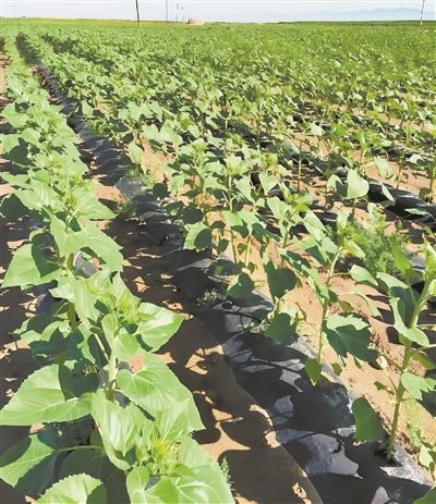 土壤經(jīng)中國農(nóng)業(yè)科學(xué)院鹽堿地改良創(chuàng)新團隊改良后,種植的食葵長勢良好。受訪者供圖