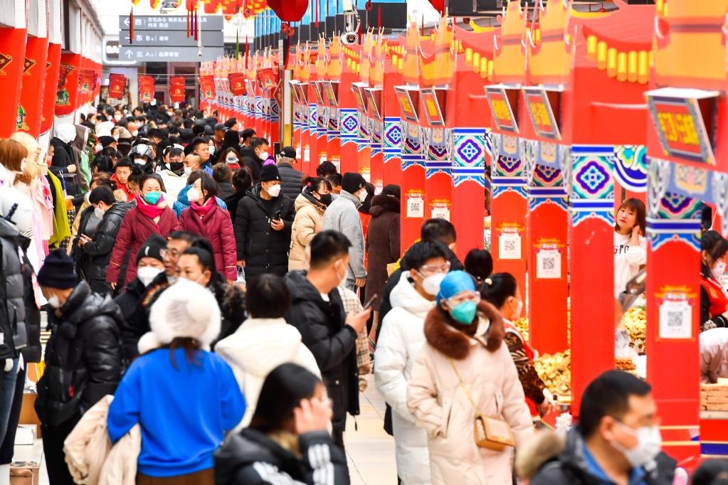 1月19日,市民在吉林長春市中東大市場年貨大集選購年貨。新華社記者 許暢 攝