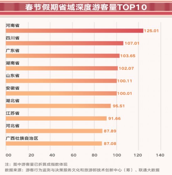 返鄉(xiāng)探親游客量大,“老家游”成熱點(diǎn)。本次春節(jié)假期,周口、商丘、阜陽、南陽、信陽、駐馬店、衡陽、畢節(jié)、南充、邵陽、黃岡、菏澤等城市進(jìn)入了外地深度游前30。這些城市今年春節(jié)旅游活動(dòng)豐富,周邊城市和探親游客的到來極大地帶動(dòng)了這些“老家”城市春節(jié)旅游市場(chǎng)。