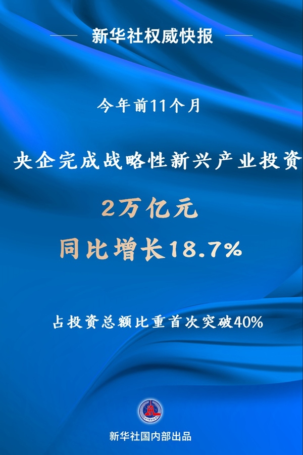新華社北京12月24日電(記者王希)今年以來,中央企業(yè)堅(jiān)守實(shí)體經(jīng)濟(jì),在新興產(chǎn)業(yè)的布局節(jié)奏加快,1至11月完成戰(zhàn)略性新興產(chǎn)業(yè)投資2萬億元,同比增長18.7%,占投資總額比重首次突破40%。