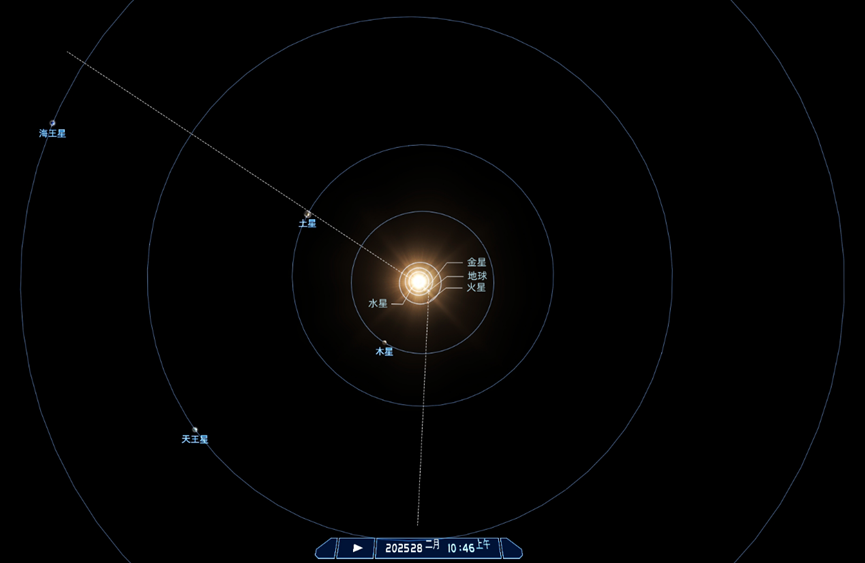 模擬2025年2月28日太陽系空間視角。上海天文館供圖