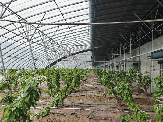 櫻桃種植同樣成績(jī)斐然,186個(gè)共1200畝的櫻桃種植示范設(shè)施大棚,選用國(guó)內(nèi)外優(yōu)質(zhì)品種,并運(yùn)用11項(xiàng)智能化控制功能與三層保溫技術(shù),年產(chǎn)量300萬斤,錯(cuò)峰成熟填補(bǔ)了市場(chǎng)空白。