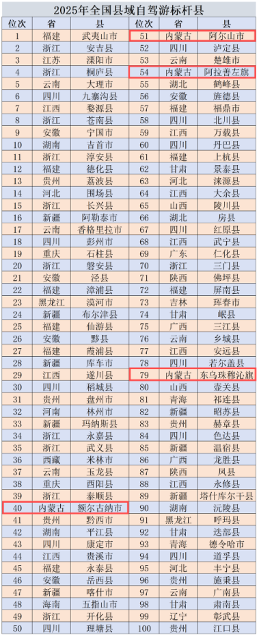 在公布的這100家標(biāo)桿縣榜單中,額爾古納市位列第40位,阿爾山市位列第51位,阿拉善左旗位列第54位,東烏珠穆沁旗位列第79位。