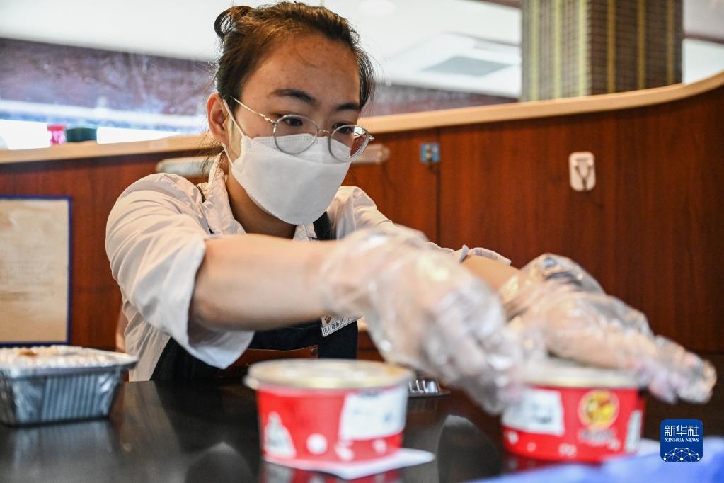 3月18日,在泉州市一家快餐店內(nèi),店員在打包愛心午餐。