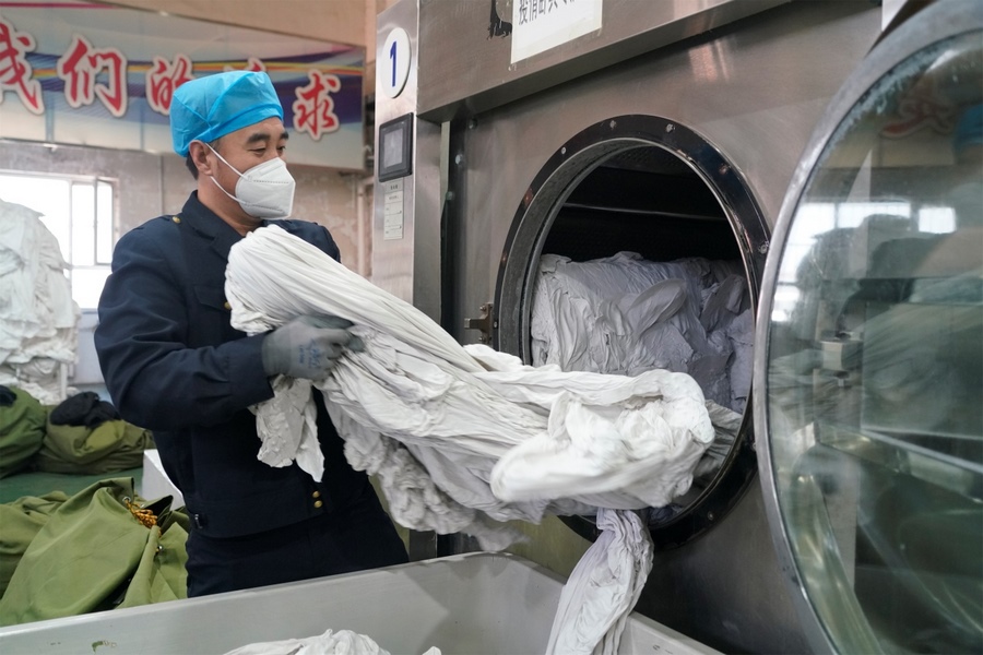在這寒冬時(shí)節(jié),記者走進(jìn)中鐵呼和浩特局呼和浩特客運(yùn)段洗滌車間里,幾十臺(tái)洗脫機(jī)、烘干機(jī)、高溫熨燙機(jī)等機(jī)器產(chǎn)生的高溫讓室內(nèi)悶熱異常,室內(nèi)氣溫達(dá)40-50度,職工們忙起來(lái)仍然是大汗淋漓,與外面的天寒地凍形成了極大溫差?!⊥ㄟ^(guò)“回收、分類、洗滌、烘干”等“一條龍”服務(wù),讓臥具煥然一新。