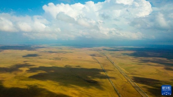 這是5月30日拍攝的內蒙古錫林郭勒盟蘇尼特右旗境內的草原風光(無人機照片)。