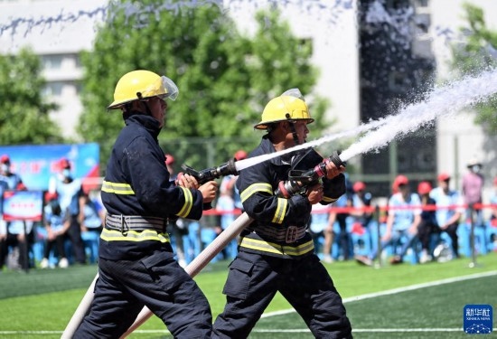 6月2日,微型消防站代表參加水槍打靶消防業(yè)務技能比武。