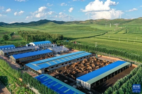 8月3日拍攝的扎魯特旗百順養(yǎng)殖專業(yè)合作社(無(wú)人機(jī)照片)。
