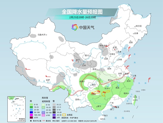 圖4 全國降水量預(yù)報圖(2月16日08時-17日08時)