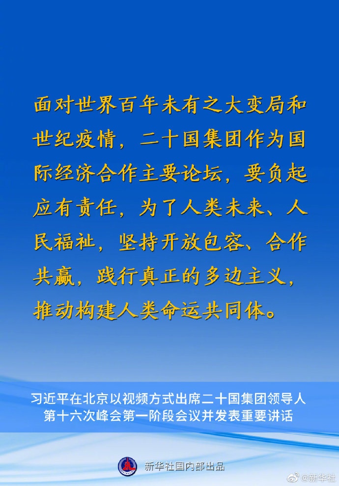 國家主席習(xí)近平10月30日在北京以視頻方式出席二十國集團(tuán)領(lǐng)導(dǎo)人第十六次峰會(huì)第一階段會(huì)議并發(fā)表重要講話。講話有哪些要點(diǎn),一起來看↓