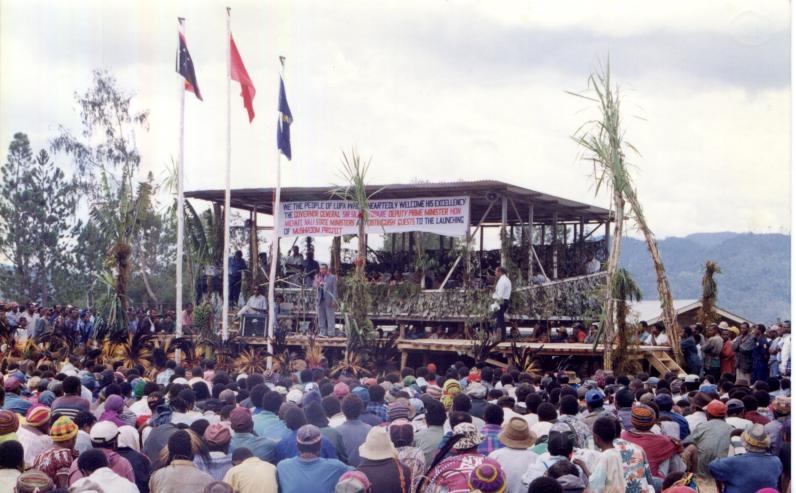 圖為1998年,在巴新的菌草技術(shù)重演示范試驗(yàn)成功現(xiàn)場會(huì)現(xiàn)場。(國家菌草工程技術(shù)研究中心供圖)