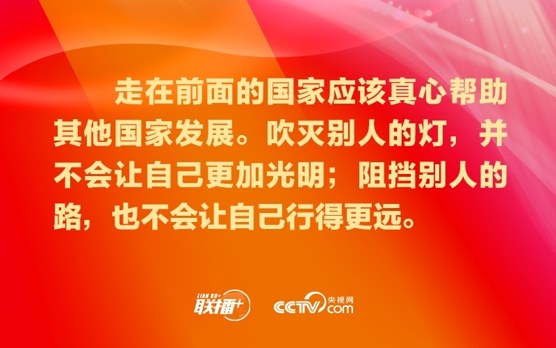 要堅持共享機遇、共創(chuàng)未來,共同做大人類社會現(xiàn)代化的“蛋糕”,努力讓現(xiàn)代化成果更多更公平惠及各國人民,堅決反對通過打壓遏制別國現(xiàn)代化來維護自身發(fā)展“特權”。