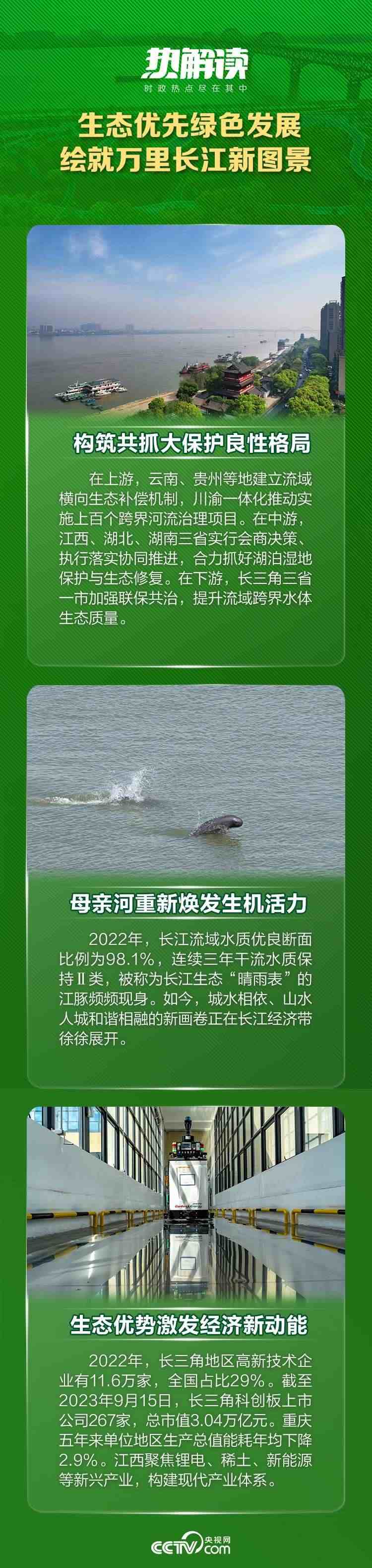 習近平總書記一直高度關(guān)注長江生態(tài)環(huán)境,多次強調(diào)“共抓大保護,不搞大開發(fā)”。他指出,“推動長江經(jīng)濟帶發(fā)展必須從中華民族長遠利益考慮,走生態(tài)優(yōu)先、綠色發(fā)展之路”。